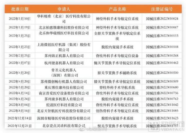 2022年国内获批上市的手术机器人,数据源于动脉橙