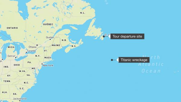 泰坦尼克号沉没后的残骸遗址大概在距离海面3800米的位置。据悉,在如此深的海底,所有物体都承受约40兆帕的压力,大概是地面上的390倍。“泰坦”号潜水器的设计潜航深度可达4000米,最多搭载1名驾驶员和4名游客。