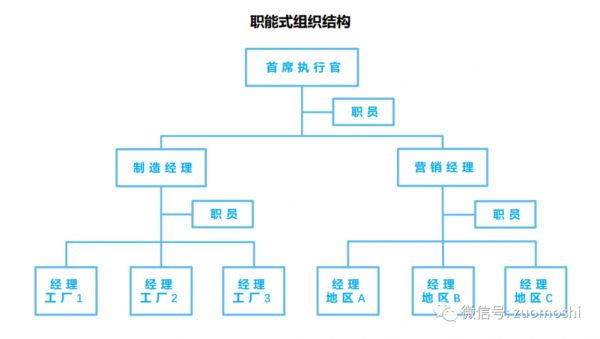(职能式组织利于管控,但因为权责反馈不直接等容易僵化)