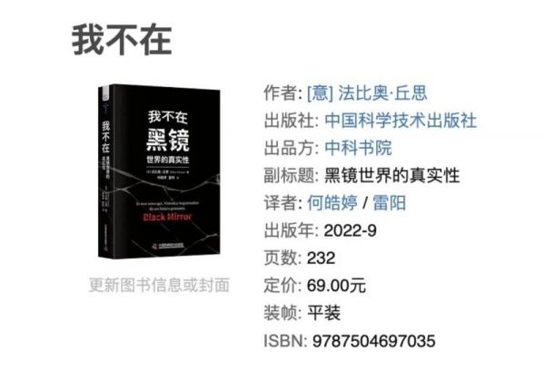 【1】《我不在:黑镜世界的真实性》| [意] 法比奥·丘思,中国科学技术出版社, 2022年9月