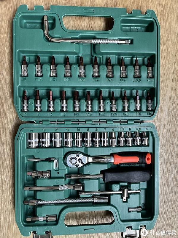 总结:46件套装估计都是用的公模 做工精细度都不行 挑便宜的就是了 粗用坏了就扔 放车上丢了也不心疼…但还是希望有厂商能够用心做好这类便携工具套装,把几个重复不常用的十字 一字换成更实用的批头,产品做精做细必能成就一代经典。
