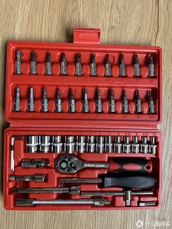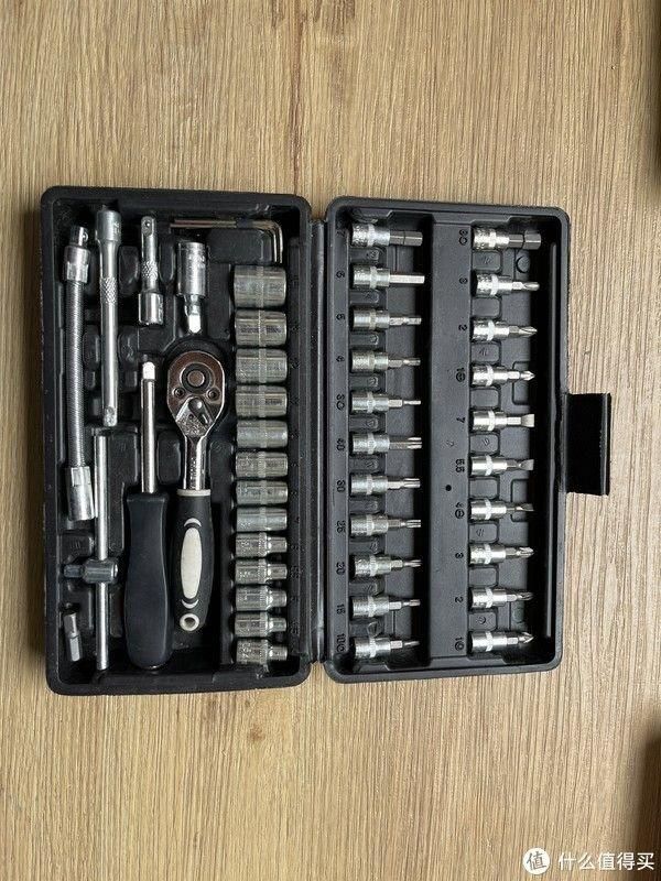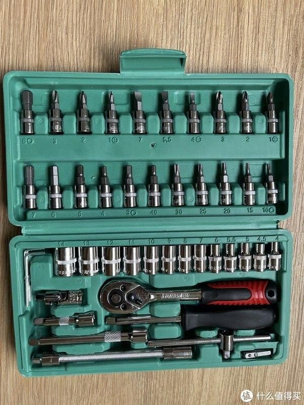 年初的时候18元入手了一套46件工具,各种批头用得还挺趁手,平时小拆小修 装个射灯之类一套工具基本搞掂,而且体积小巧方便携带。可是质量也是18元这个价位的正常水平了,前段时间棘轮扳手还坏了.
