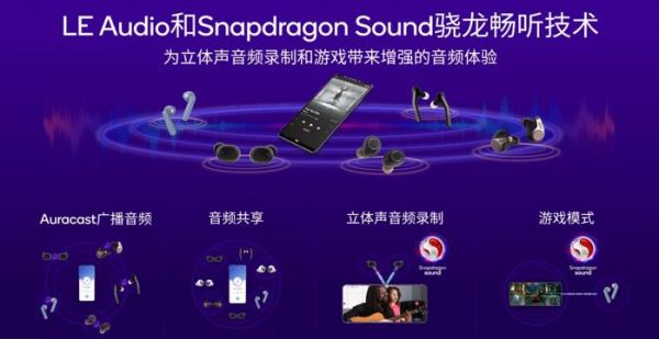 此外,这套全新的解决方案通过 LE Audio 还带来了一些新体验,包括 Auracast™广播音频。Auracast 广播音频是蓝牙技术联盟(Bluetooth SIG)推出的一个技术品牌,是 LE Audio 技术的一部分,本质是一对多的广播音频功能。而 Snapdragon Sound 骁龙畅听技术和 LE Audio 共同为立体声音频录制和游戏带来增强的音频体验,比如立体声音频录制,可以实现左右耳同时录音,也就是实实在在的立体声高清录音,就像是有一个人从你前面走过,你可以很清楚地辨别他的方向和位置,而不是所有的音频都混在一起。这项功能有望在以后的直播等场景中得到很好的应用。