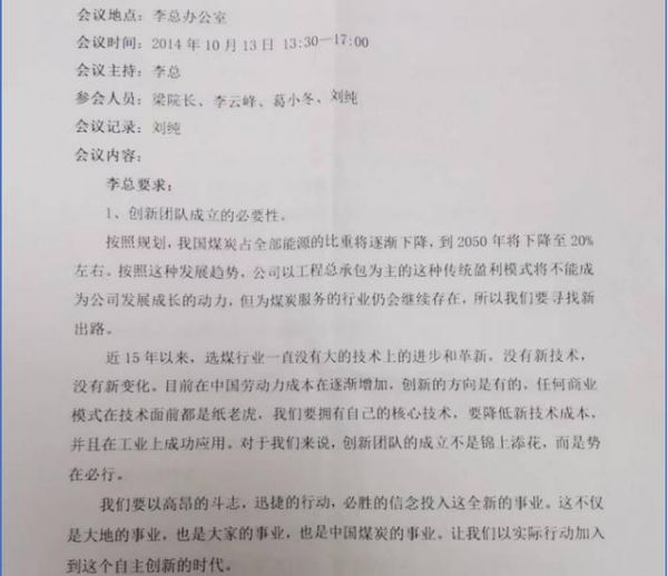 所以参加完面试后,2014年国庆期间,李太友先生与大地公司高管聚会,就谈到要尝试创新的问题。国庆节后,李太友先生就组建创新团队,10月13日便组织了团队的第一次沟通交流。
