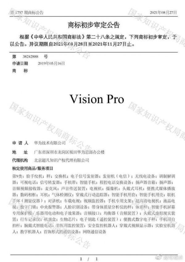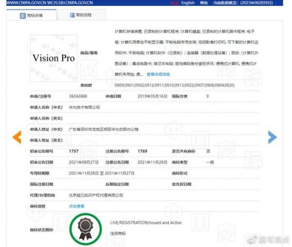 Vision Pro商标和华为“撞车”了