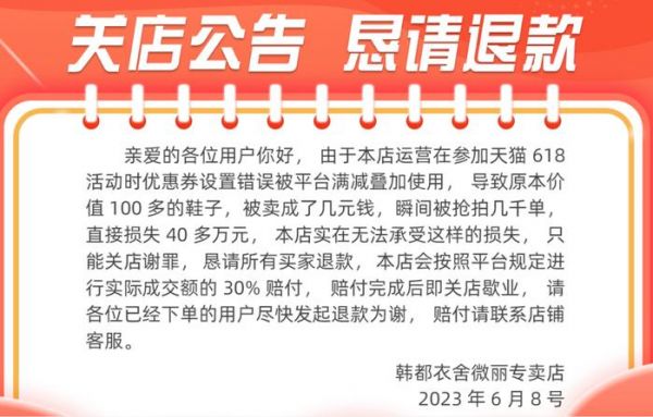 所以瞬间引来了几千个订单,直接损失了40多万元。店家自称无法承受这样巨大的损失,只能关店谢罪,恳求所有买家退款。
