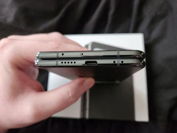手机可以 180 度水平展开,没有此前报告的问题。可以看到明显的折痕,和 Galaxy Z Fold 类似。