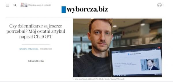Boleslaw Breczko是波兰最大的新闻媒体之一《Gazeta Wyborcza》报社的一名记者。今年4月初,他使用ChatGPT撰写了一篇题为《马斯克 vs OpenAI:创造新的人机界面竞赛》的文章,并署上自己的名字在报社网站上发布。