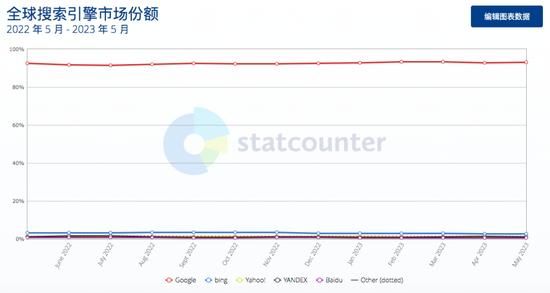 Bing的市场占有率,在二三月份刚引入GPT时引发关注,根据网站通讯流量监测机构Statcounter,2023年3月Bing的市场份额是2.86%,5月是2.77%,不仅占比没有提高,甚至还有下降趋势。