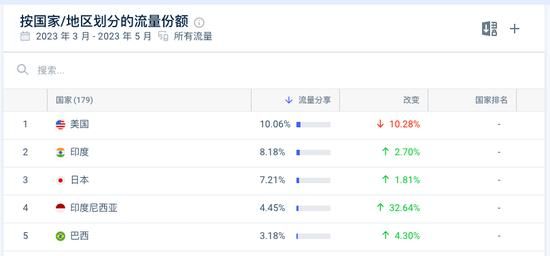 ChatGPT的全球流量分布 来源 / SimilarWeb数据