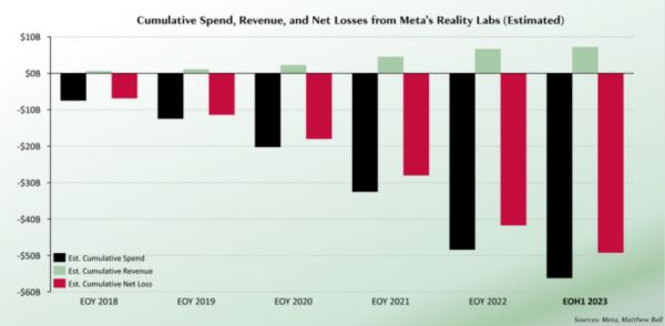 图:Meta的Reality Labs的累计支出、收入和净亏损