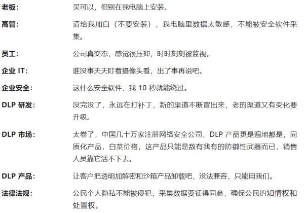 想想也真的觉得神奇,恐怕没有其它任何一个产品能像 DLP 这样,达到人人都“讨厌”的地步,即使是花钱采买的企业自己也是同样的心理。