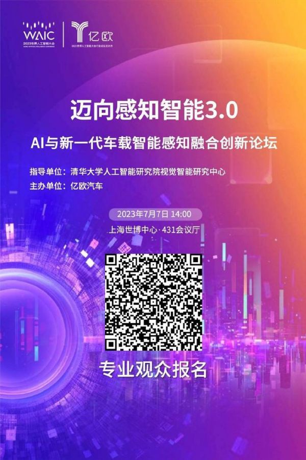 本届世界人工智能大会首次聚焦AI与新一代车载智能感知技术,亿欧将同步举办“迈向感知智能3.0——AI与新一代车载智能感知融合创新论坛”。