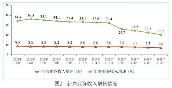 同比:22年1-5月份,新兴业务收入1283亿元,同步增长34.3%,相比之下,增长率在暴跌。