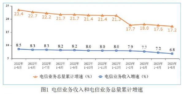 同比:22年1-5月份,电信业务收入6650亿元,同步增长8.5%,相比之下,增长率回落明显。