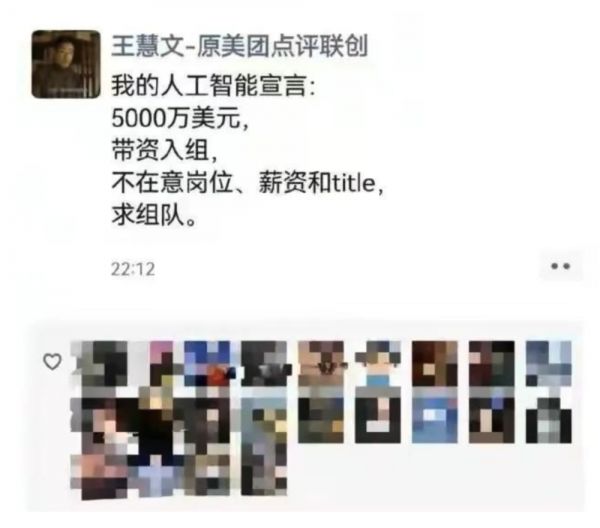 王慧文因「健康问题」离开美团董事会, AI公司刚起步