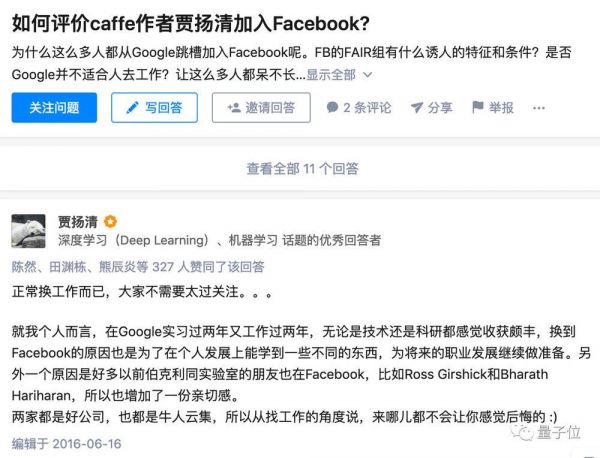 一个“如何评价贾扬清离职 Facebook?”的问题迅速吸引了不少回答,各方知情人士,纷纷以爆料表达了对大神关注。