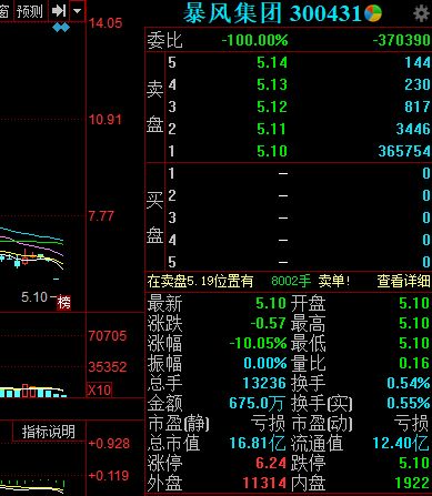 7月30日,暴风集团连续第二日一字跌停,报5.1元,成交额675万元,换手率0.54%。