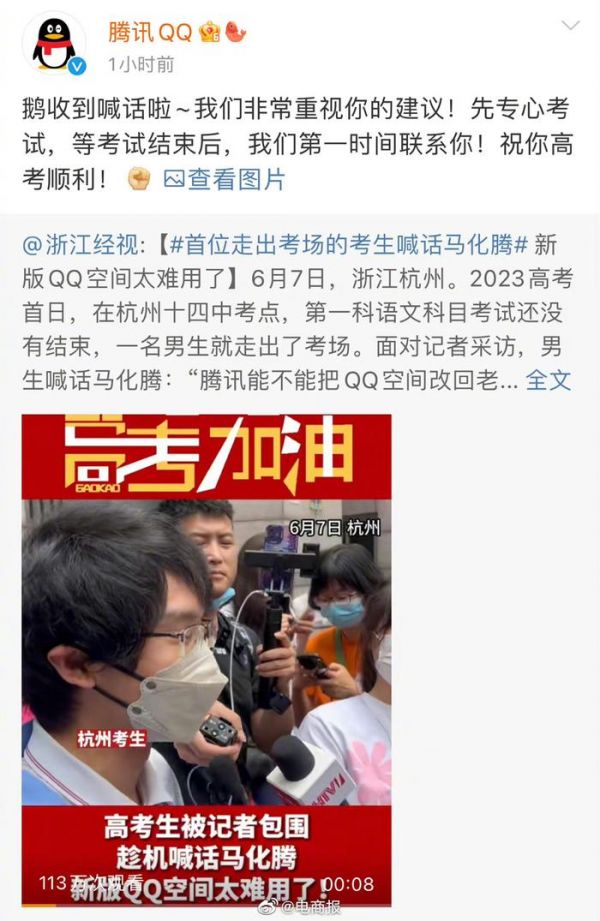 第一个走出考场的男生喊话马化腾:新版QQ空间太难用……