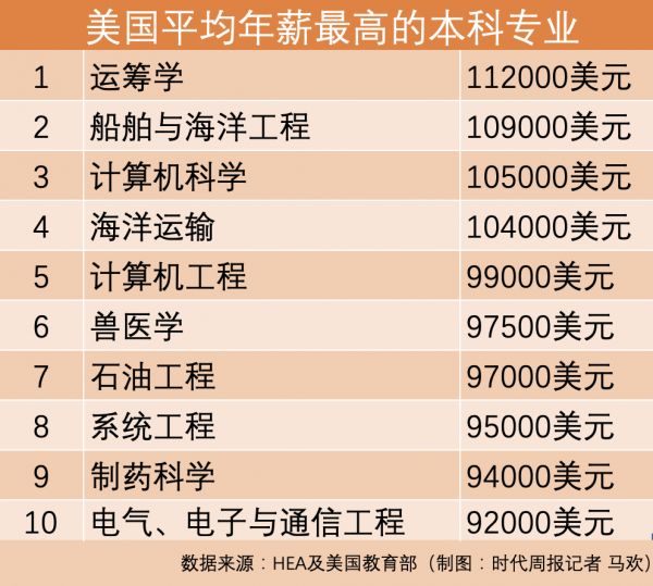 虽然不少硅谷码农惨遭解聘,但计算机科学仍然是最热门的高薪专业,该专业毕业生年薪约为10.5万美元(约合人民币75.4万元),远高于美国全职劳动者的收入中位数——约57000美元(约合人民币40.9万元)。