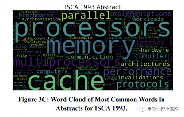 这样的时代对应到处理器架构,就是如何把单核处理器的性能做到极致,如何能把处理器的时钟频率尽可能提升,并且在一个时钟周期内做尽可能多的事情。ISCA上研究的重点方向就包括并行处理(例如流水线,超标量架构,分支预测,超长指令字等等),以及如何确保处理器不被速度较慢的主存所拖累(因此诞生了缓存架构的经典研究),这一点在1993年ISCA发表论文的关键字云中可以看到。