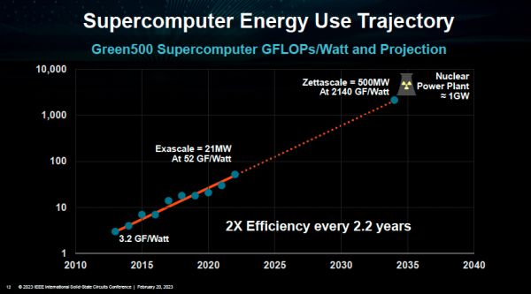 半导体工艺摩尔定律正在接近尾声,但是芯片性能和能效比的指数发展规律仍然如火如荼,尤其是在热门的专用加速器领域——例如GPU计算的能效比就是每2.2年改善两倍。