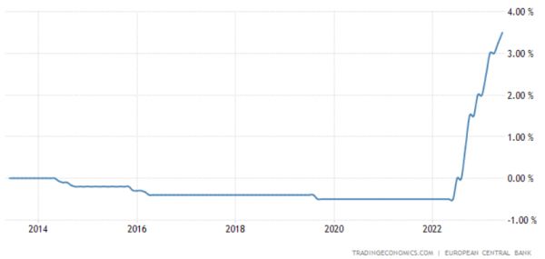 (欧洲央行存款利率,来源:tradingeconomics)