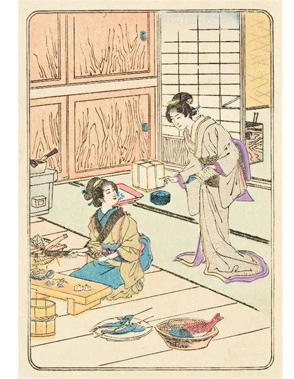若对日本生活史稍加研究,便会发现,在大正时代(1912年~1926年)之前,孩子们的身影在厨房里无处不在。他们被视为成年人生活的辅助系统,在各种场合,都会被命令从事一些帮手的工作:劈柴、打水、擦洗走廊、打扫浴室……男孩们多从事体力劳动,女孩们则需要从豆荚上拔筋、切剁食物、削鱼片等等。一些研究显示,对于日本农村的孩子来说,直到昭和30年代(1950年代),在后院的灶台上煮饭也仍是女孩的工作。