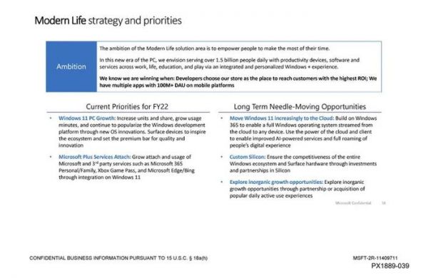 实际上,这份 PPT 是正在联邦贸易委员会目前与诉微软举行的听证会的一部分,因为它包括微软的整体游戏战略以及该战略与公司其他业务的关系。