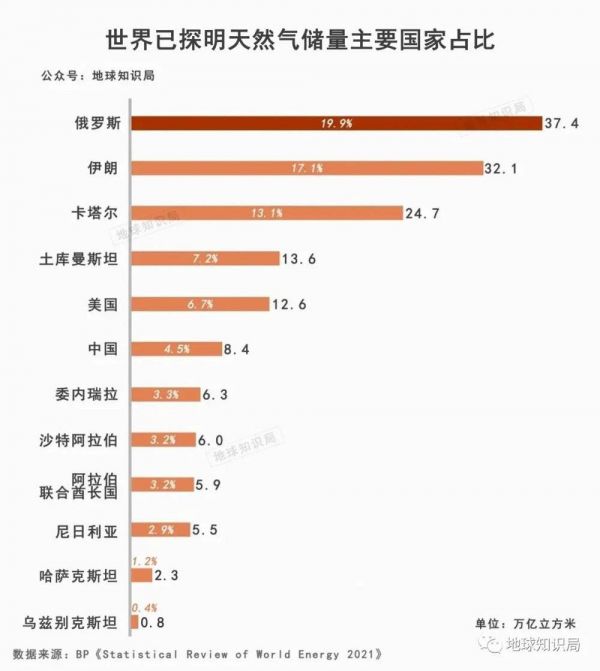 8. 世界十大天然气储量国排名, 国际燃气网,2021-05-25