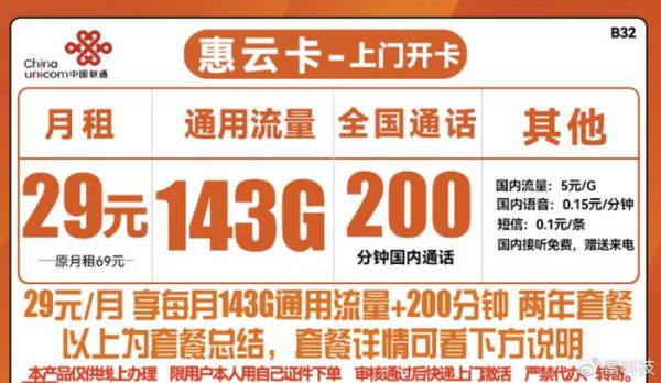 其次,对流量有需求的用户完全可以办理月租价格低得多的互联网套餐,比如29元月租的惠云卡,套餐内就有100多GB流量。