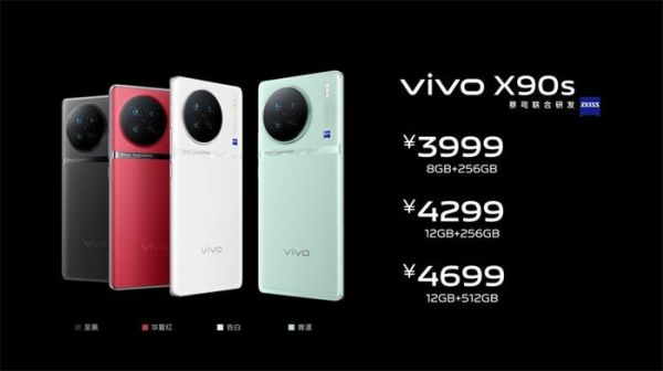 其他变化还包括有主摄大底升级成了索尼IMX989,长焦升级IMX758,vivo X90s Pro+新增3.5倍潜望等,而像屏幕、电池、快充等等,基本上与vivo X90相同。价格方面,vivo X90s的8GB+256GB/12GB+256GB/12GB+512GB三种存储配置,售价分别为3999元、4299元、4699元,于6月30日全面开售。