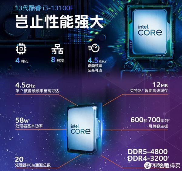 而对于i3是不是没过几年就落后的情况,大家也不用担心,Intel TSCG高级副总裁、硅工程总经理、CPU大牛Jim Keller采访时说到,CPU架构升级的大周期从10年提升到5年,也就是说每5年就会重新研发一次CPU架构,这个架构不是平常看到的Skylake到Kaby Lake再到Coffee Lake那样的小改,是重构级别的。所以,大家完全不用担心这代i3就使用3、4年就会落后,小代升级体验可以忽略,是真的。这就引出来佐证的i3-13100F了。