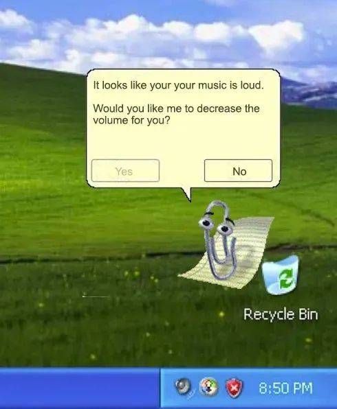 当然,还有人想起了那个经典的烦人大眼夹,它会持续在你的屏幕上问候“声音太大了吧!调小点儿吧!”