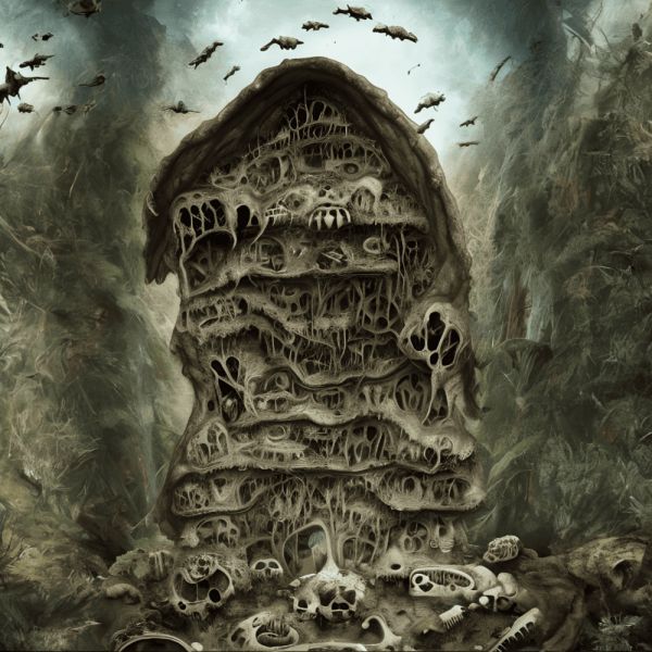 AI创作的作品的“烂”可能会更天马行空。2022年,有一个网站就举办了“AI创作的最丑陋房屋”大赛。这个获得优胜奖的可怕房子简直让人san值狂掉,看起来就像是一块发烂发臭的毛肚,果然是只有AI能理解的设计。