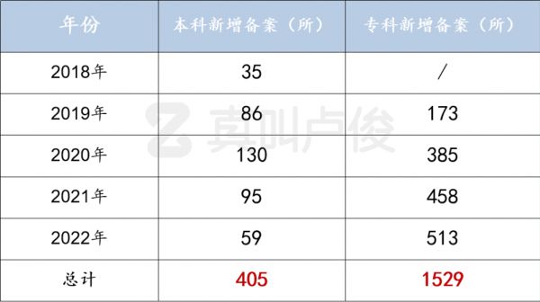 新增第二的,是近几年大火的人工智能。有点夸张的是,从首批35个人工智能专业点高校公示以来。这5年内,共有405所本科、1529所专科院校,新增备案了这个专业。
