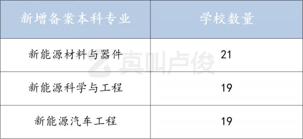 去年,新能源相关专业就新增了近60个高校专业点。包括新能源材料与器件、新能源科学与工程、新能源汽车工程等,均有19个以上的新增量。