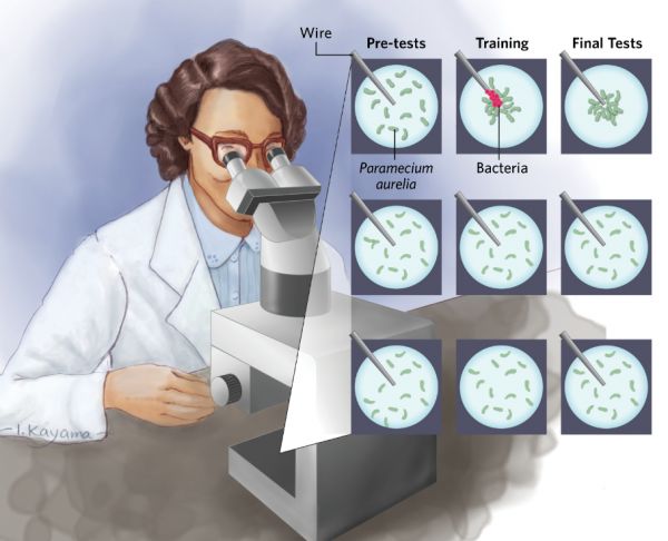 她将草履虫培养物放在显微镜载玻片的一滩液体上,插入一根涂有细菌的金属丝(细菌就是草履虫的美味食物),虽然这些草履虫刚开始会有些拘谨,但它们很快就向金属丝游去。经过几次试验,Gelber发现,将没有任何细菌的金属丝放入液体,也会引发相同的觅食行为。