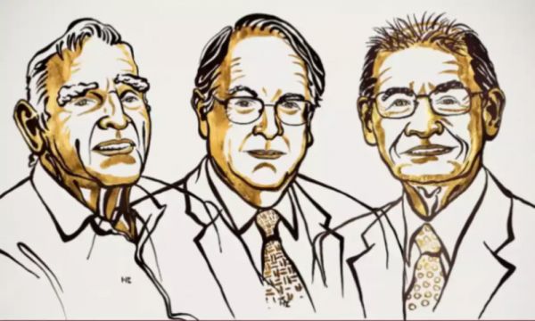 从左至右分别为古德纳夫、惠廷汉姆、吉野彰。图片来自诺贝尔奖委员会