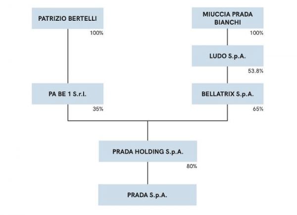 在港股上市的普拉达(Prada),大股东是持股80%的意大利公司PRADA HOLDING S.P.A(Prada控股公司),穿透股权后,最终实控人是谬西亚·普拉达(Miuccia Prada),即公司创始人马里奥·普拉达(Mario Prada)的孙女。