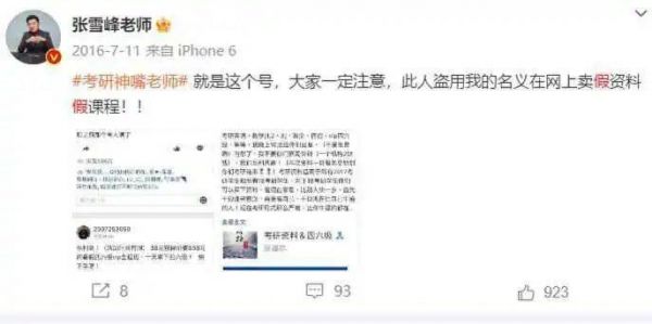 大量假冒账号,也带来了很多问题,此前,张雪峰发文称:“人在家中坐,锅从天上来!我没说过将近80%的人会失业这句话!特此声明!!!!”,并多次亲自下场打假假借其名,售卖相关课程的虚假账号。