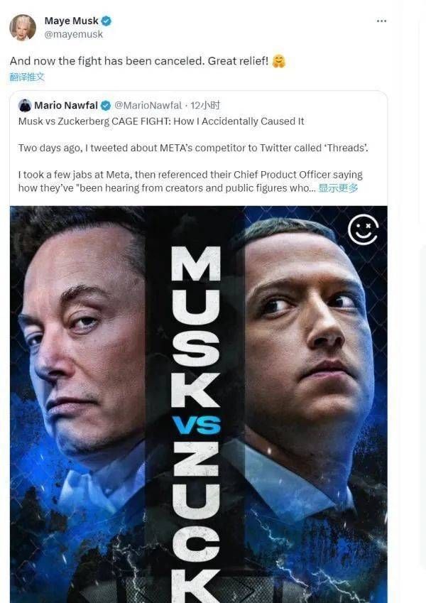 紧接着,老母亲又发第二条推文:“格斗已经取消了。真是令人松了一口气。”