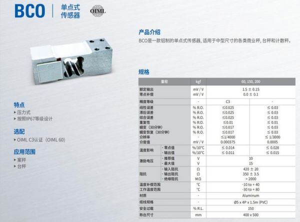【广州南创电子科技】韩国凯士CAS称重传感器BCO-60L BCO-150L BCO-200L kgf技术参数: