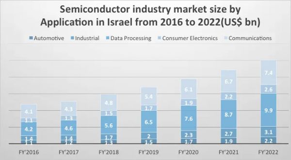 以色列半导体找到自己的路子之后,每年稳定增长,预计2023年以色列半导体市场收入可以达到11.4亿美元。值得一提的是,中国是以色列半导体最大的消费市场。