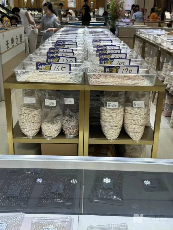 位于金丽二楼的“梦想成珍”店员告诉记者,“五一过后刚涨了一波价,淡水珠便宜一些,涨幅为10%-30%,海水珍珠涨幅更多。”记者注意到,该店的淡水珍珠报价为店内标签价的1折,而海珠的报价则是店内标签价的1.5折。