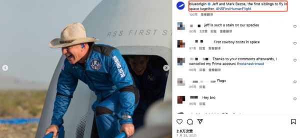 蓝色起源官方账号发布的贝索斯成功返回的照片