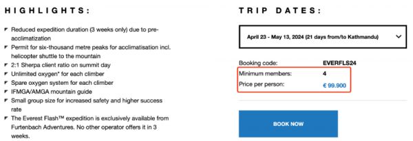 Furtenbach官网的珠峰攀登单次报价