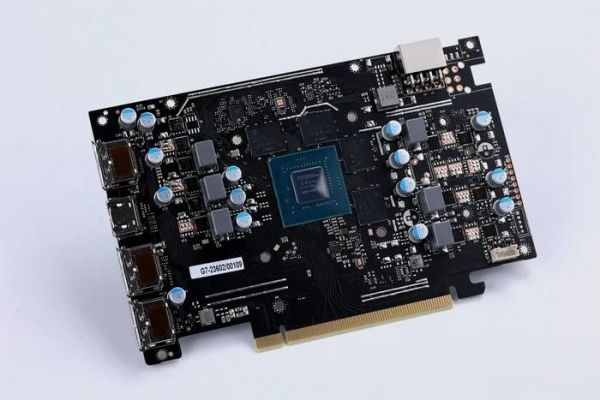 这款显卡搭载了 RTX 40 系 GPU 中最小的 AD107,具有 3072 个 CUDA 核心,GPU 周围是 4 核 GDDR6 显存颗粒,其速率高达 17Gbps,总容量 8GB,128-bit 位宽。如上图所示,AD107 的芯片面积与 GDDR6 显存颗粒差不多大。