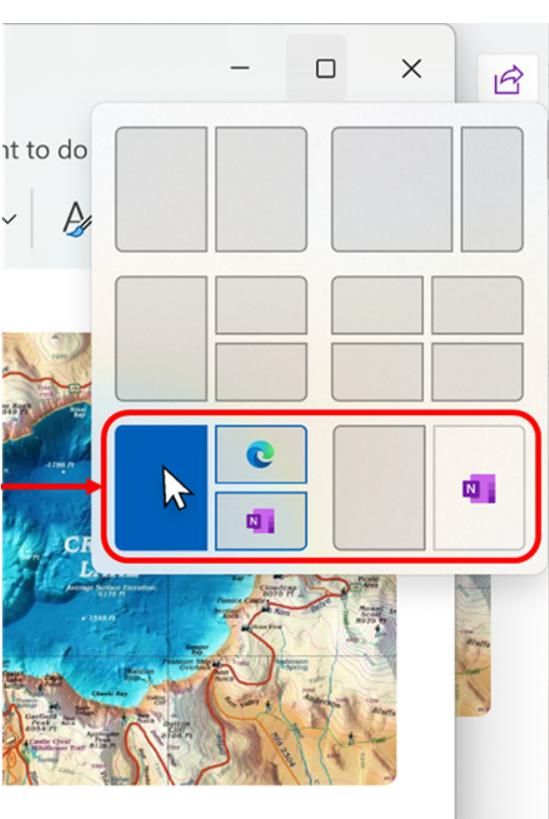 新功能可一键将多个应用窗口对齐在一起。用户将鼠标悬停在应用上的最小化或最大化按钮(或 WIN + Z)上时,将看到各种布局选项中显示的应用图标,系统会推荐最有效的布局选项。该功能仅面向部分 Dev 预览用户灰度推送。