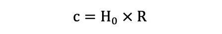 因此我们可以假设可观测宇宙的半径为R,并且将地球与星系之间的退行速度记为Vf,光速记为c,则可以令退行速度Vf = c;这个等式表示当固有距离达到可观测宇宙的半径时,地球与星系之间的相对速度等于光速。这意味着这些星系正在以与光速相等的速度远离我们,超过这个距离的星系将以更快的速度远离我们。